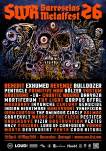 SWR BARROSELAS METALFEST é um dos festivais de música extrema mais antigos em toda a Europa, activo de forma consecutiva desde 1998. SWR significa Rebelião dos Guerreiros do Aço em inglês, Barroselas é a nossa terra, e Metalfest sabem bem o que significa! Localizado desde a primeira edição nesta pacata vila do noroeste de Portugal e a 80km norte do Porto, a região é reconhecida pelas praias de areia do Atlântico, pelas apetitosas propostas gastronómicas, pela natureza verdejante e pelo requintado e fresco vinho verde. O festival conta com dois palcos cobertos a tocar de forma intercalada e com uma combinação de estilos, um metal market recheado e obscuro, zona de comidas e bebidas, um café e campismo selvagem na floresta. Nós adoramos uma pujante banda ao vivo, adoramos ilustrações e imagética obscura do metal, adoramos partilhar nova música e novos artistas, adoramos a liberdade e o companheirismo.