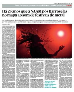 NÚCLEO DE APOIO ÀS ARTES MUSICAIS é uma Associação Cultural sediada em Barroselas e activa de forma contínua desde 1999. Actualmente mantem eventos próprios como o SWR BARROSELAS METALFEST (desde 1998), METAL BATTLE PORTUGAL (desde 2010) e a programação do Espaço Cultural DINAAMO. O ecofestival SOUNDVILLE (2017-2022) e a BRAGA MUSIC WEEK (2010-2019) abrandaram com a pandemia e ainda não regressaram de forma plena. Anteriormente a NAAM foi responsável pela programação cultural VIBE (em Viana do Castelo 2011-2018) e MOVE (em Braga 2013-2015), pelos projectos LINK+351, B-GLOBAL e Y-DYNAAMO para a Capital Europeia da Juventude – Braga 2012 e por inúmeras actividades no âmbito do ambiente, arte e música. Um quarto de século de história no coração do Minho, mais de 500 eventos artísticos e espectáculos culturais, incontáveis aventuras e épicas parcerias. Bem-vindos a este mundo dinaamico!